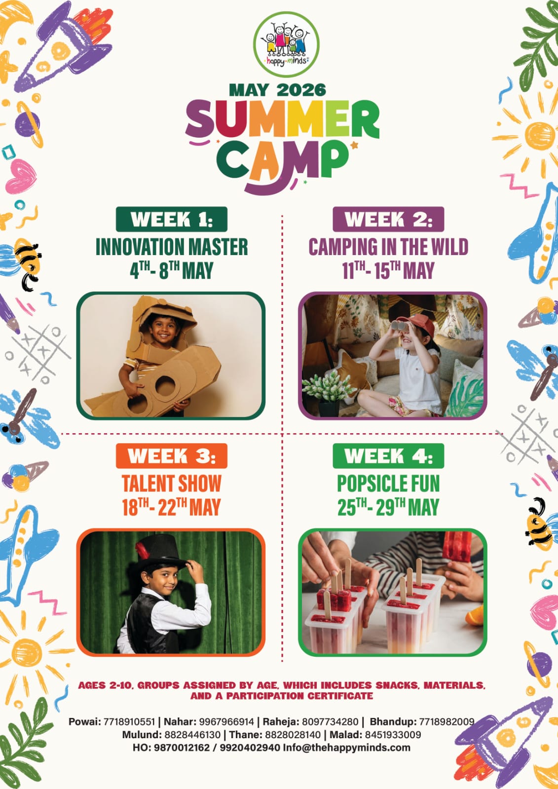 Happy Minds International is back with its Season-15 of April-May Summer Camp 2026! Summer Camp is an exciting opportunity for kids to explore new activities, make friends and develop independence in a fun and structured environment. Beyond recreation, summer camp also helps building teamwork and problem solving skills. Along with adventure-filled days, kids create life long memories and valuable life skills.